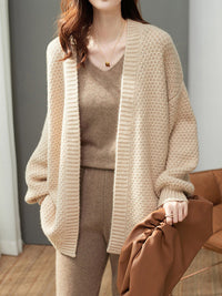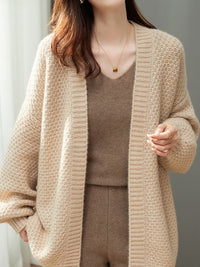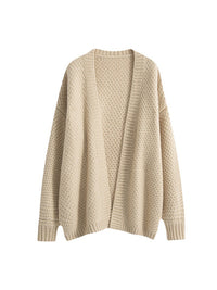 Solid Color Long Sleeves Loose Collarless Cardigan Tops