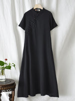 Frog Stand Collar Short Sleeve Loose Long Cheongsam