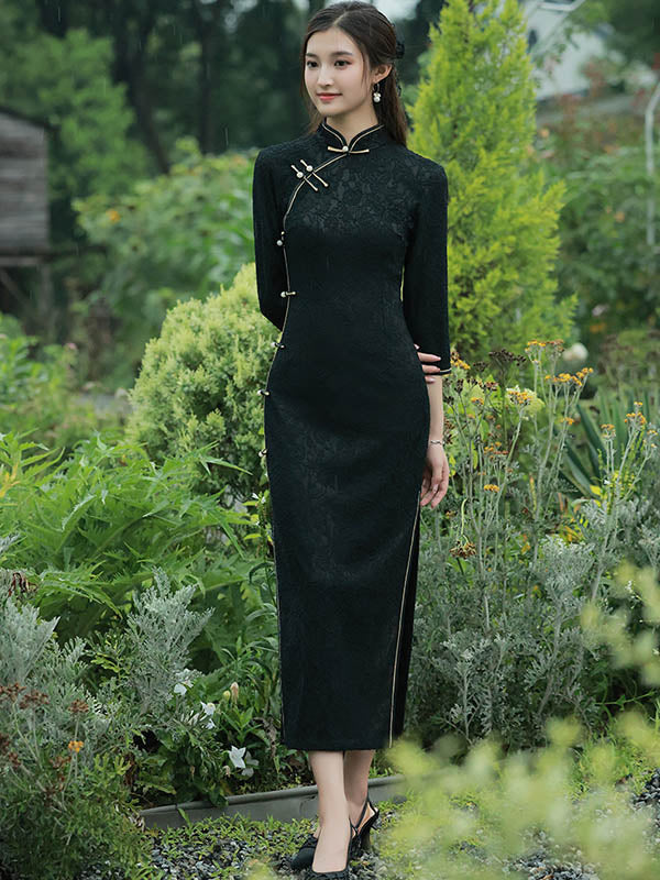 Vintage Split-Side Jacquard Long Cheongsam