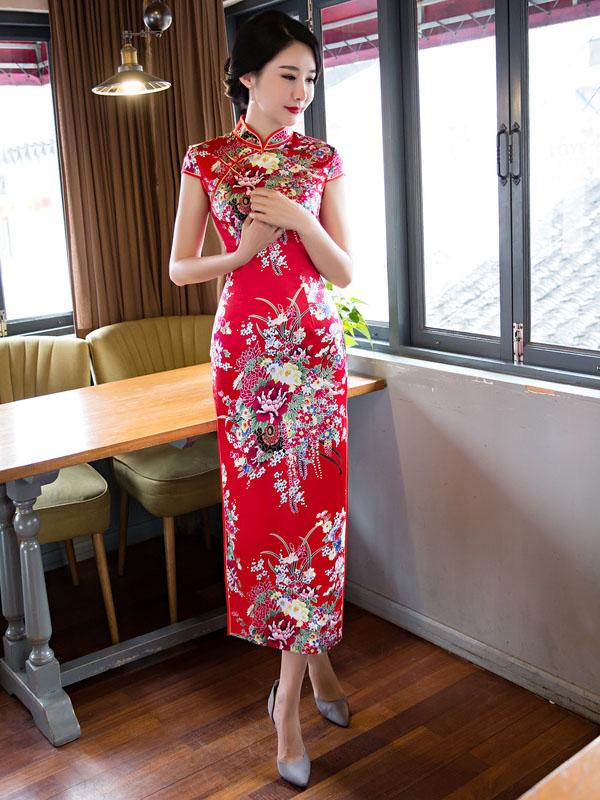 Floral Printed Split-Side Long Cheongsams