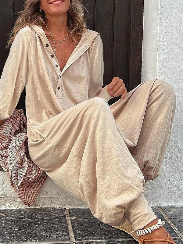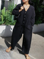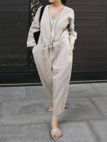 Casual Linen V-neck Jumpsuit