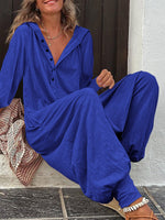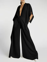 Urban Loose Wide Leg Solid Color V-Neck Jumpsuits Bottoms