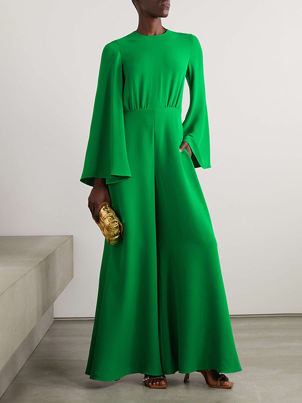 Cape Loose Pockets Solid Color Round-Neck Jumpsuits