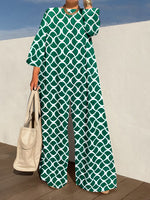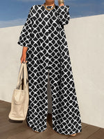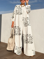 Long Sleeves Loose Printed V-Neck Jumpsuits
