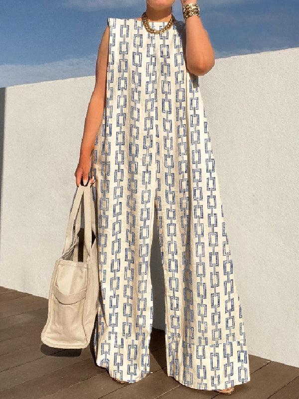 Urban Sleeveless Loose Printed Split-Joint Jumpsuits Bottoms