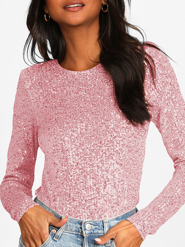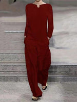 Pleated Pockets Split-Joint Long Sleeves Loose Round-Neck Jumpsuits