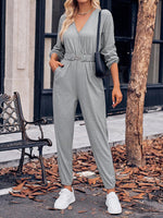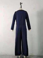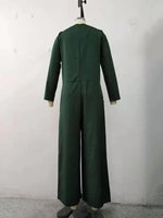 Buttoned Pockets Long Sleeves Loose V-Neck Jumpsuits