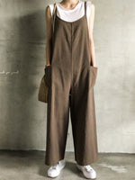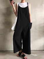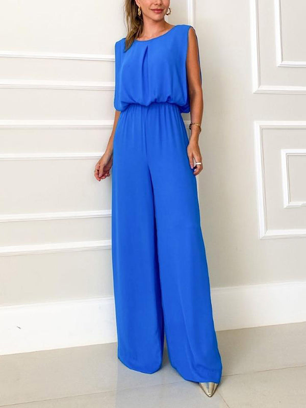 Casual Solid Color Round-Neck Sleeveless Wide Leg Jumpsuits