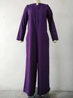 Casual Loose Long Sleeves Solid Color Boat Neck Jumpsuits