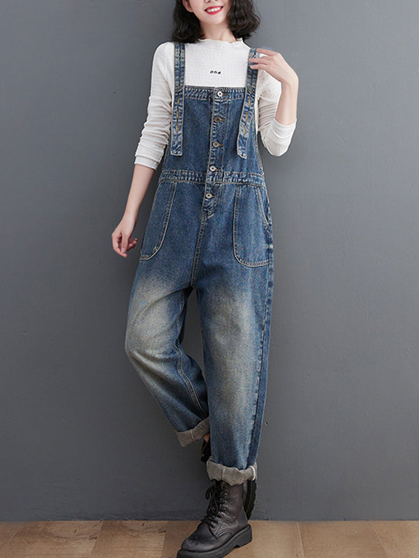 Original Solid Elasticity Denim Jumpsuits