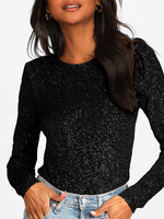 Split-Joint Puff Sleeves Round-Neck Jumpsuits