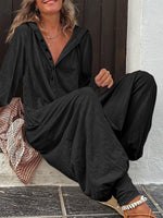 Buttoned Solid Color Loose Short Sleeves Lapel Jumpsuits