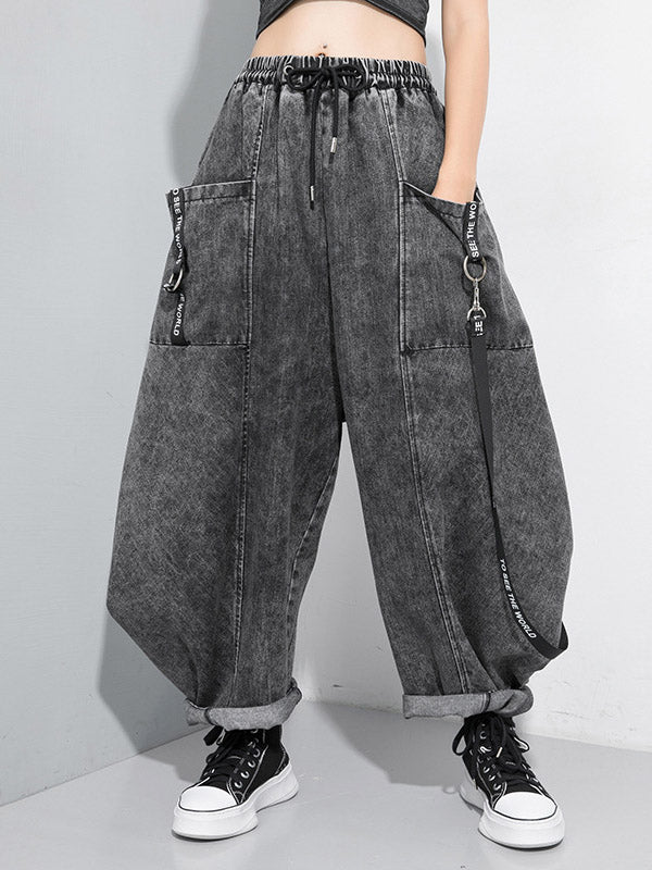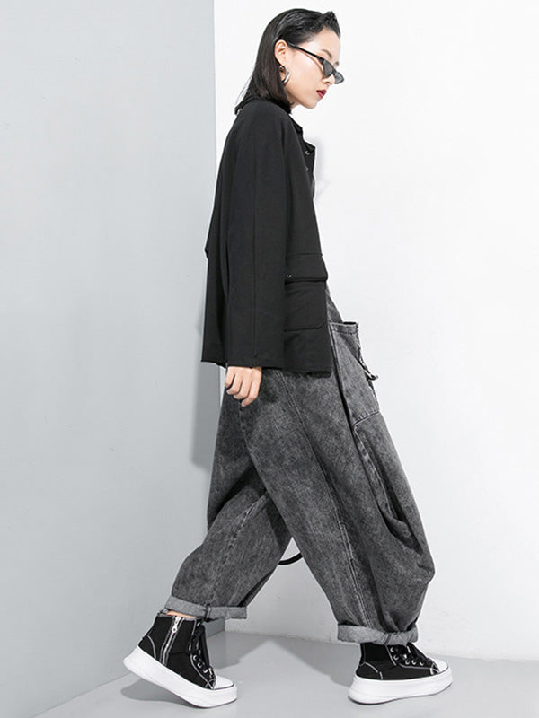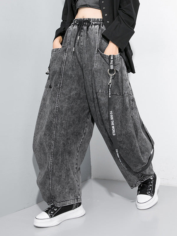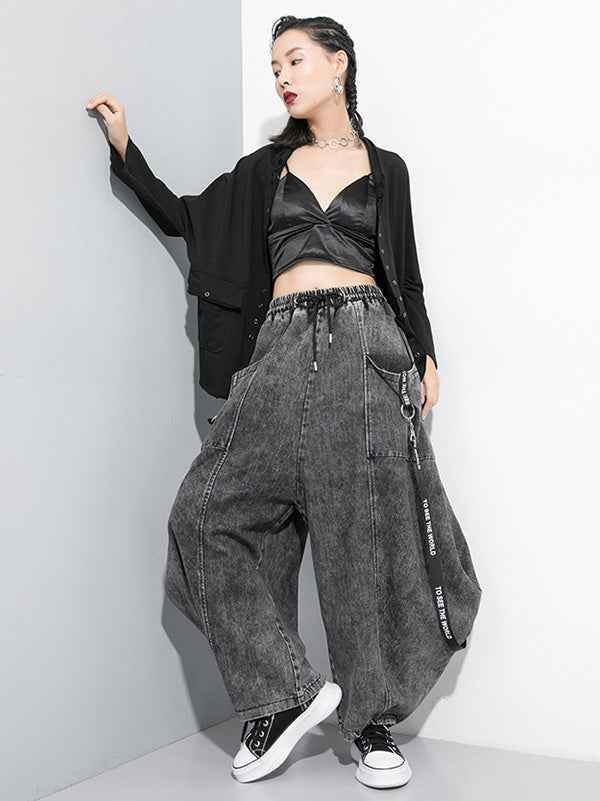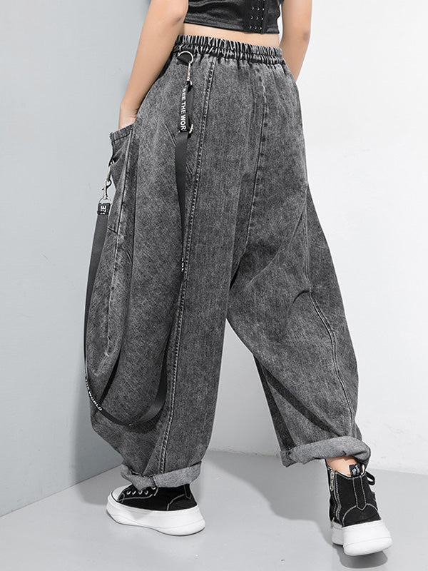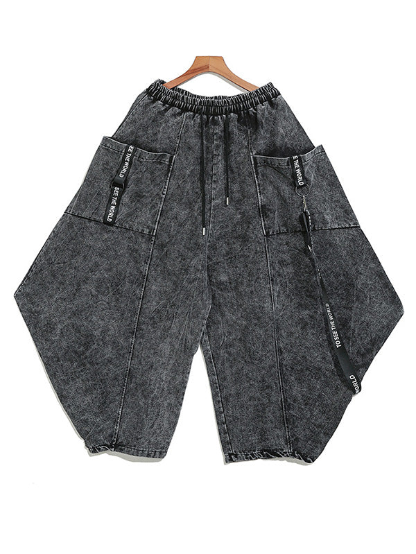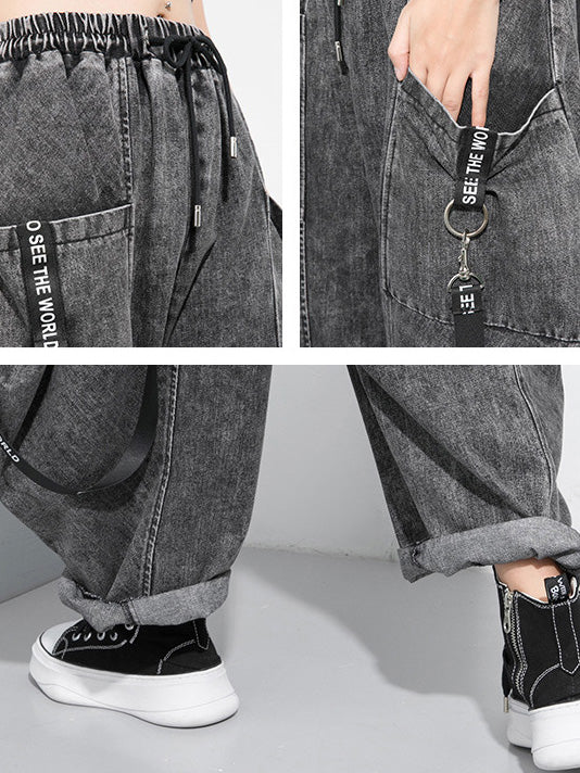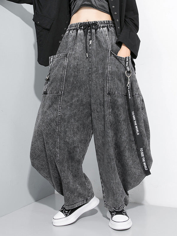 Loose Wide Leg Split-Joint Streamer Jean Pants Bottoms