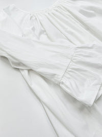 Pleated Solid Color Split-Joint Flared Sleeves Loose Round-Neck Maxi Dresses