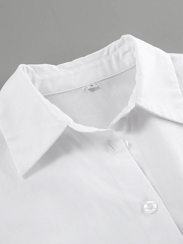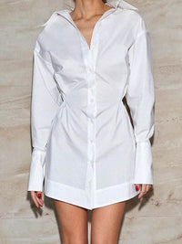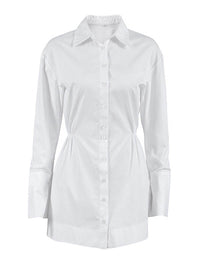 Buttoned Pleated Solid Color High Waisted Long Sleeves Lapel Shirt Dress Mini Dresses