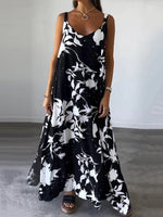 Contrast Color Flower Print Split-Joint Striped A-Line Loose Round-Neck Maxi Dresses