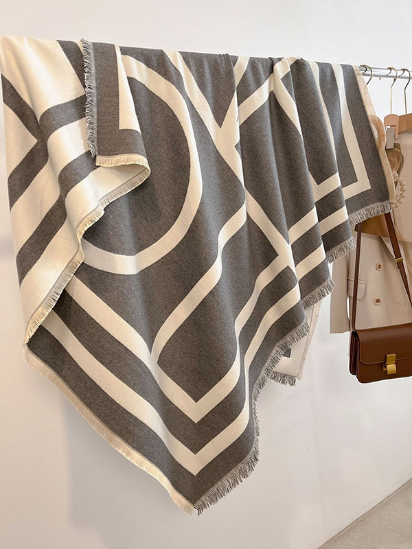 Contrast Color Fringed Keep Warm Printed Striped Shawl&Scarf