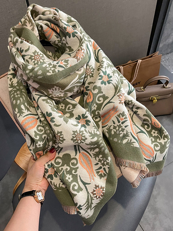 Fringed Keep Warm Knitted Flower Shawl&Scarf