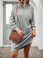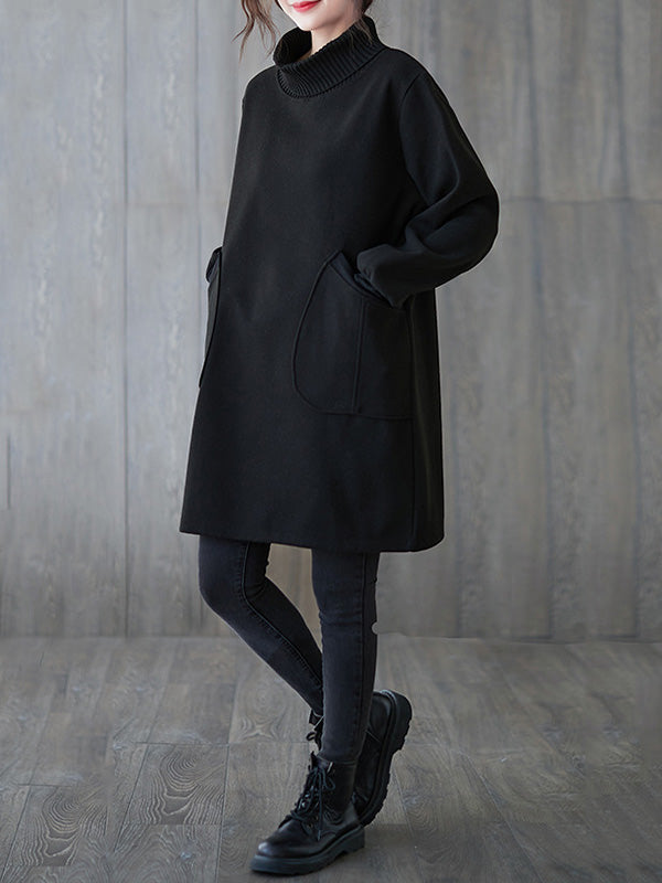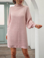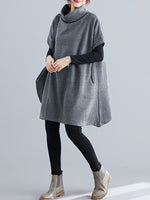 Super Loose Black High-Neck Knitting Batwing Sleeves Sweater Dress