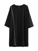 Original Black Zipper Batwing Sleeve Round-Neck Mini Dress