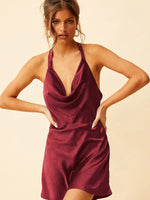 Solid Color High-Neck Backless Flared Sleeves Mini Dress