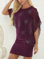 Cape-Style Solid Color Round-Neck Mini Dresses