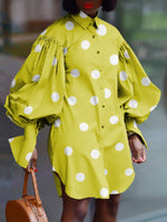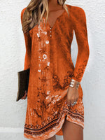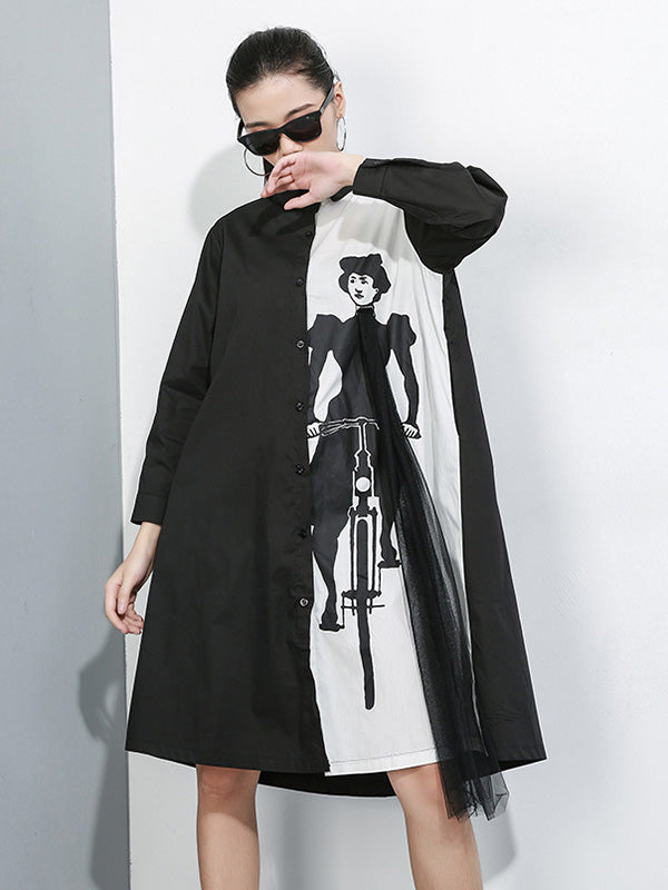 Original Loose Long Sleeves Buttoned Contrast Color Printed Lapel Collar Mini Dresses