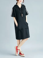Knitted Letters Pockets Long Sleeves Loose Hooded Sweater Dresses Mini Dresses