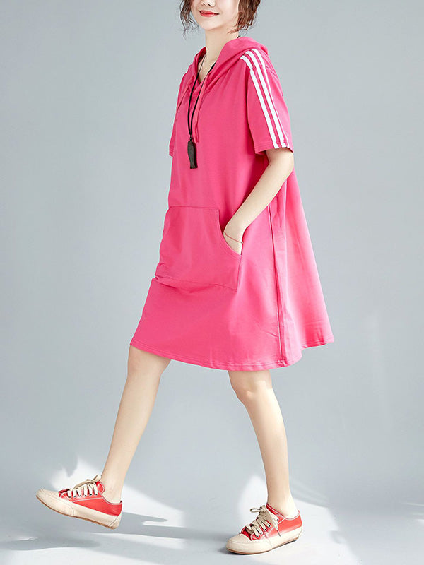 Solid Color Half Sleeves Loose Deep V-Neck Mini Dresses