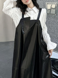 Asymmetric Pleated Solid Color Split-Joint A-Line Loose Square-Neck Slip Dress Midi Dresses