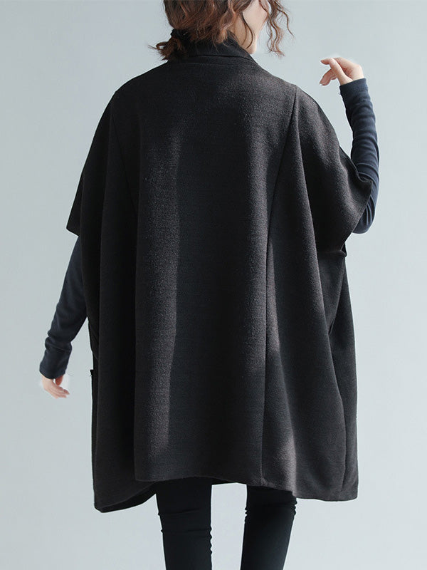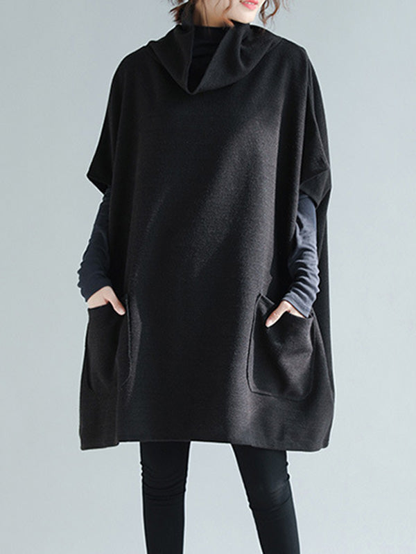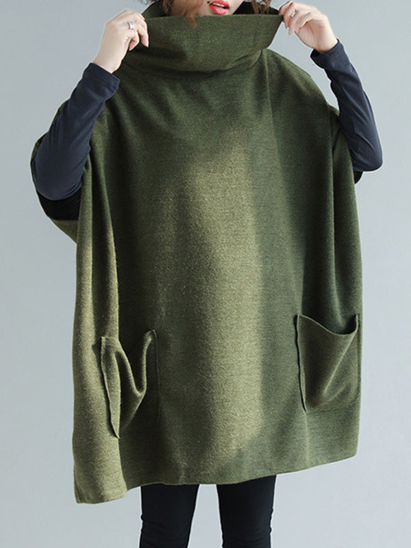 Artistic Retro Batwing Sleeves Half Sleeves Solid Color Heaps Collar Pullovers