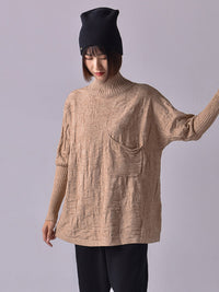 Original Pleated High-Neck Long Sleeves Sweater Top