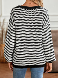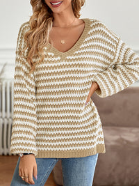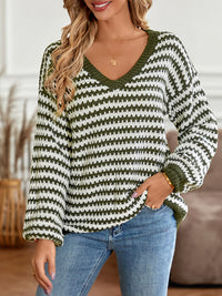 Striped Long Sleeves Loose V-Neck Sweater Tops Pullovers