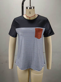 Split-Joint Striped Loose Short Sleeves Round-Neck T-Shirts Tops