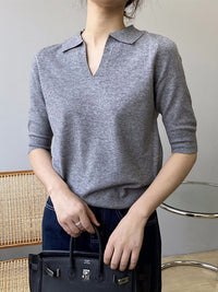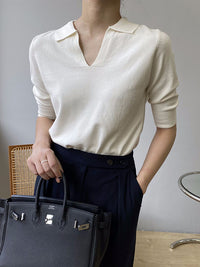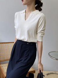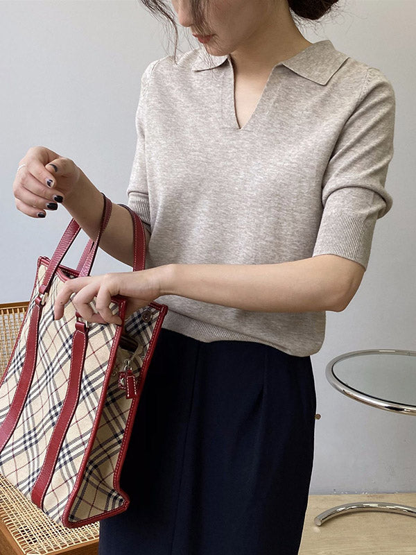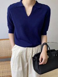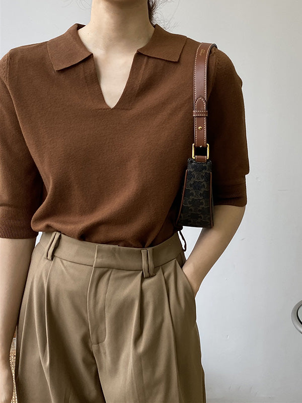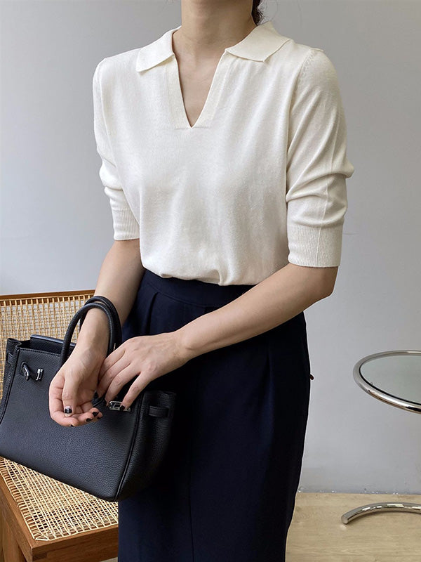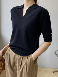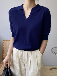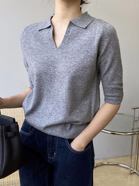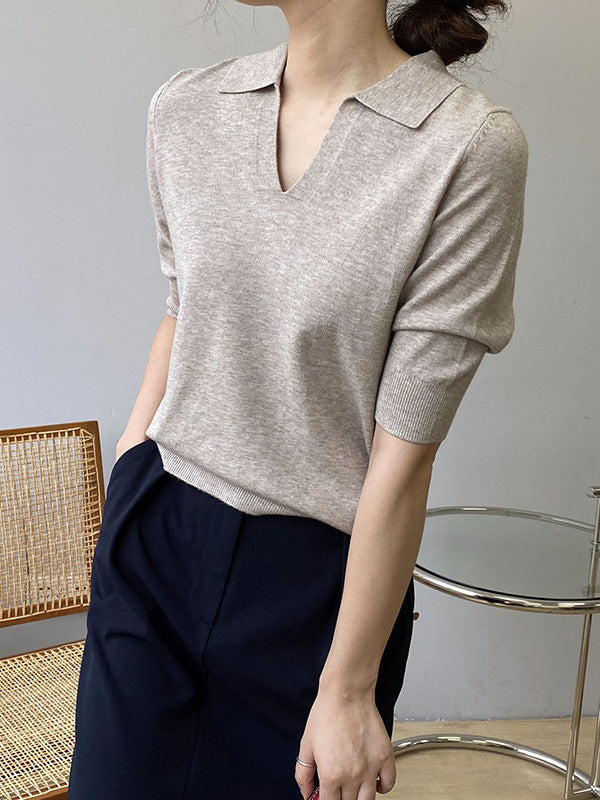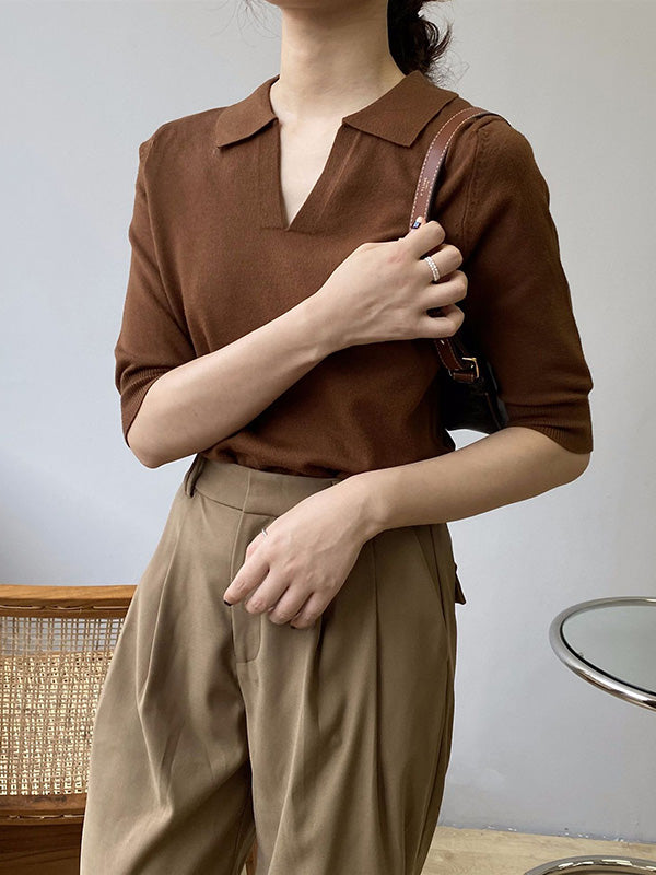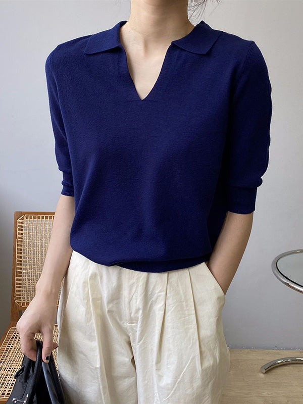 7 Colors Urban Solid Color Half Sleeves Knitting Shirt Top