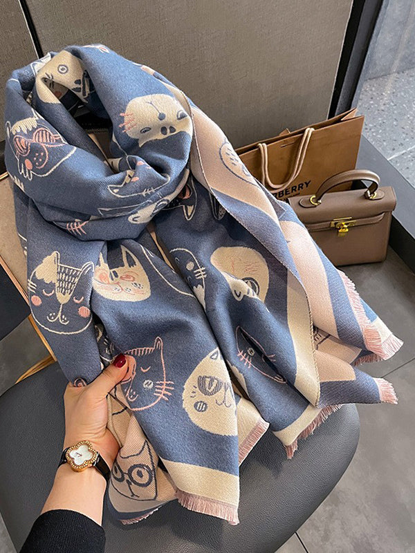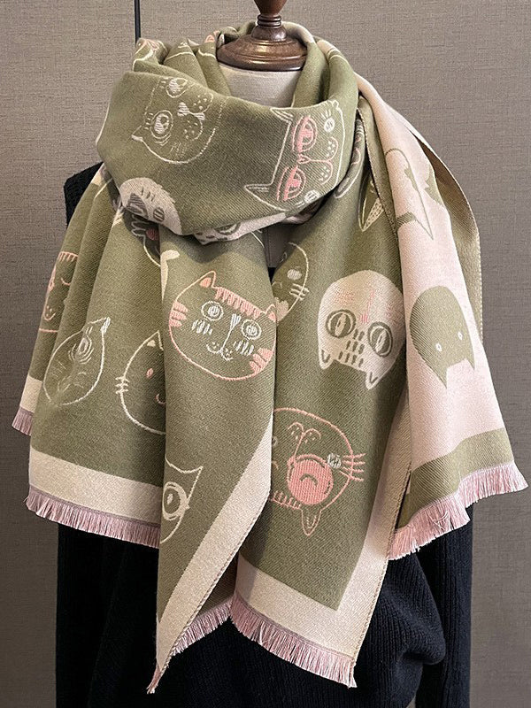 Animal Printed Fringed Keep Warm Shawl&Scarf