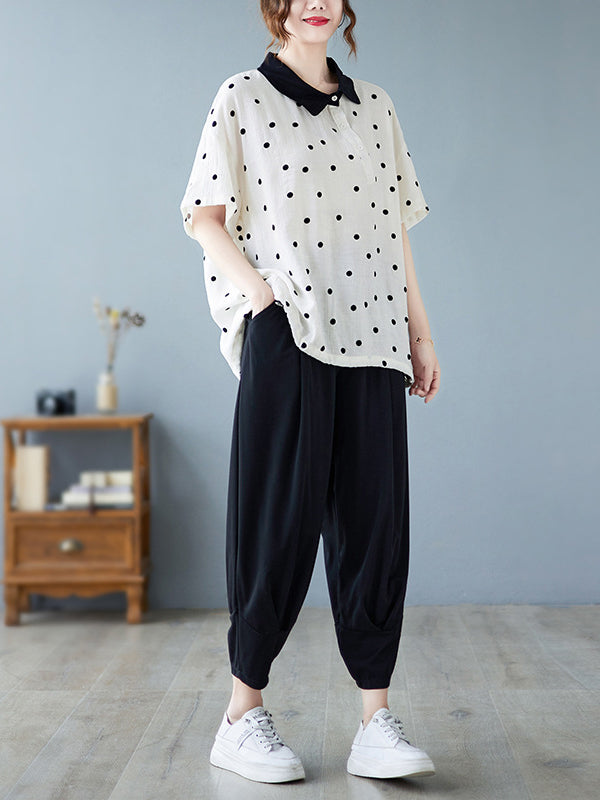 Artistic Retro Loose Polka-Dot Blouse