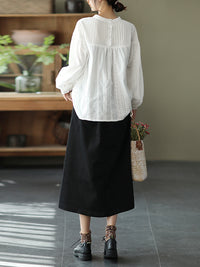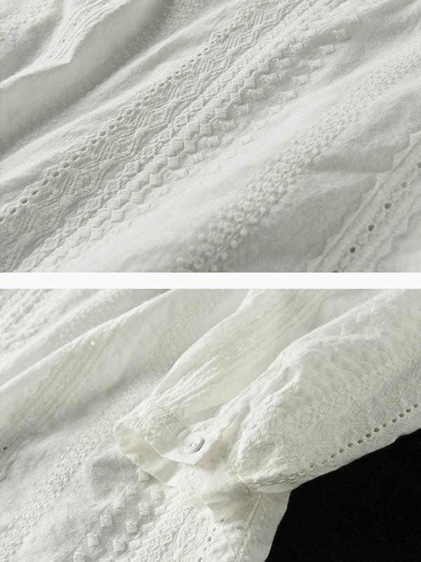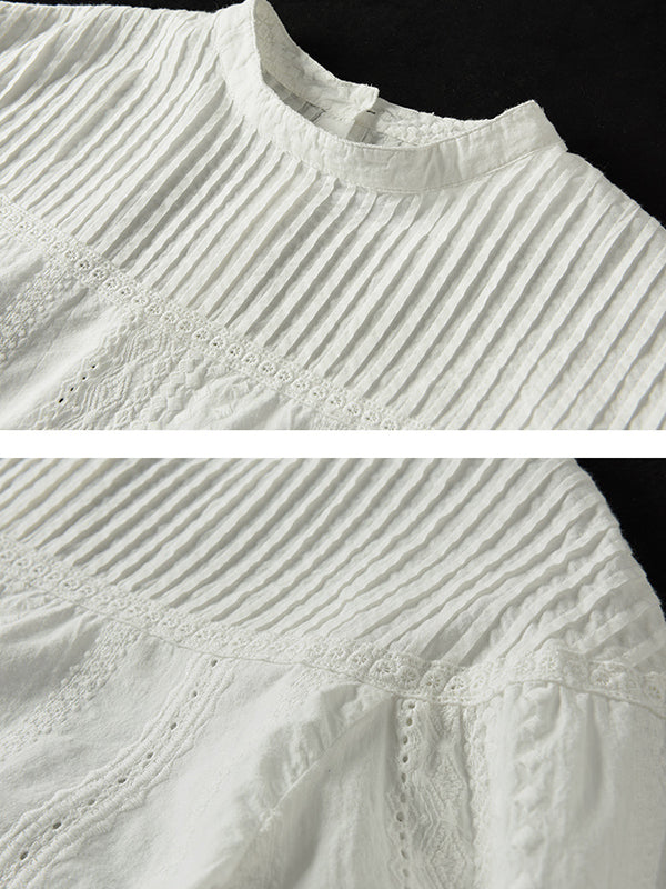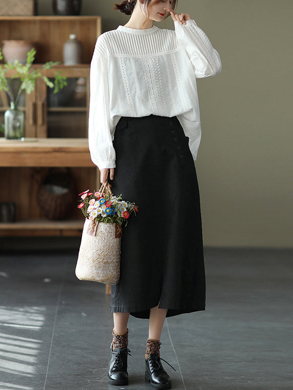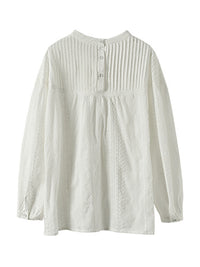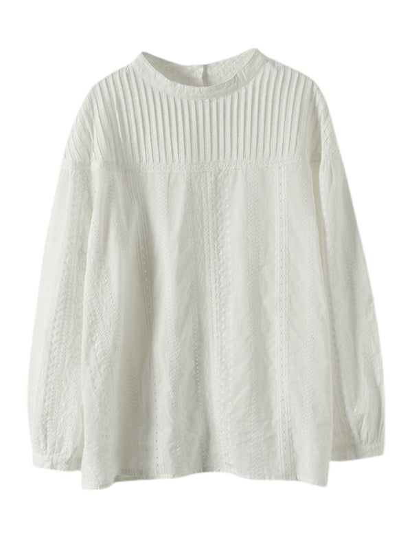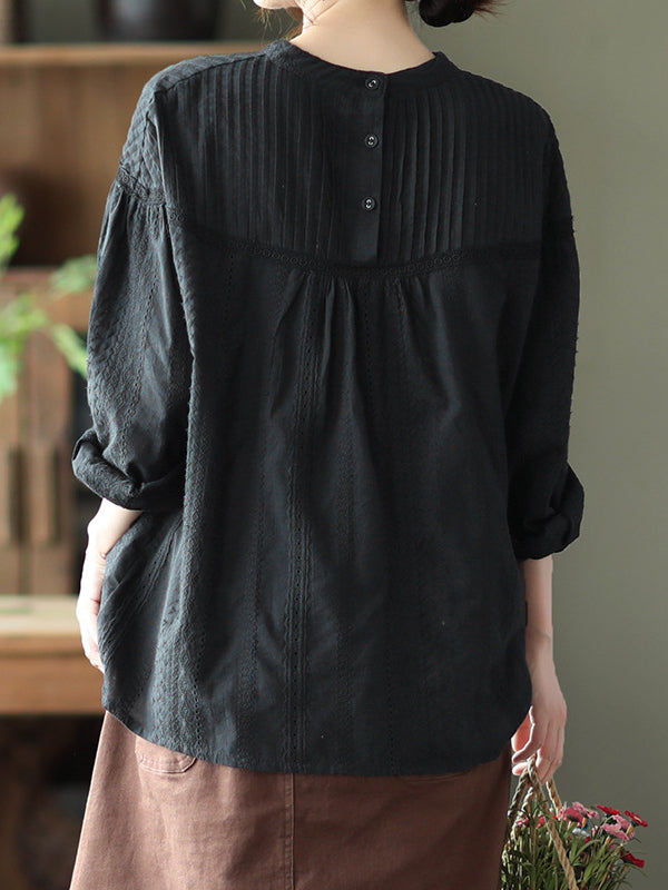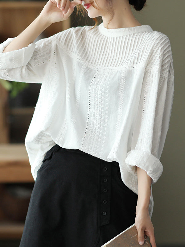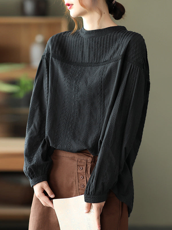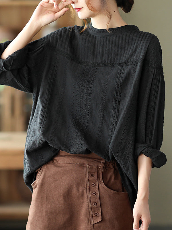 Artistic Retro Loose Solid Color Lace Hollow Long Sleeves T-Shirt Top