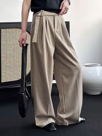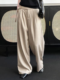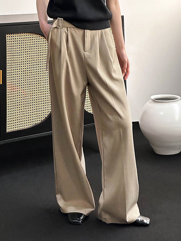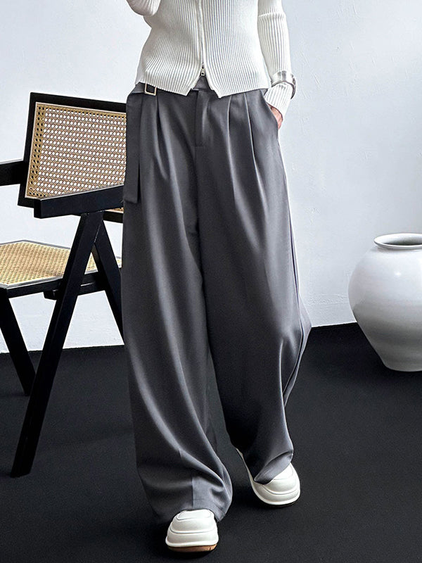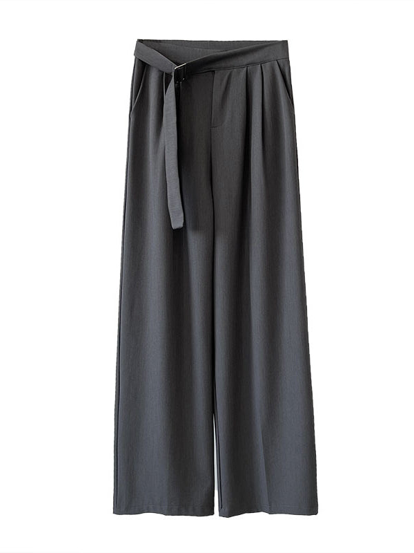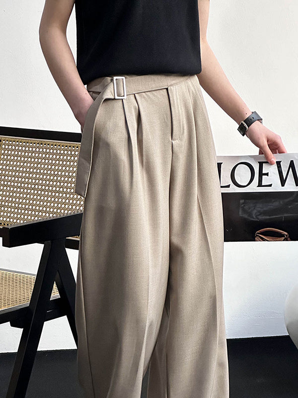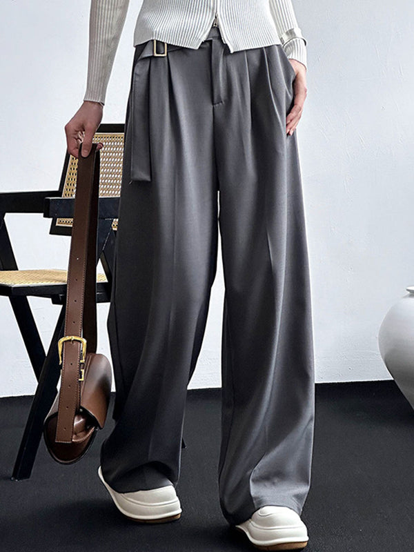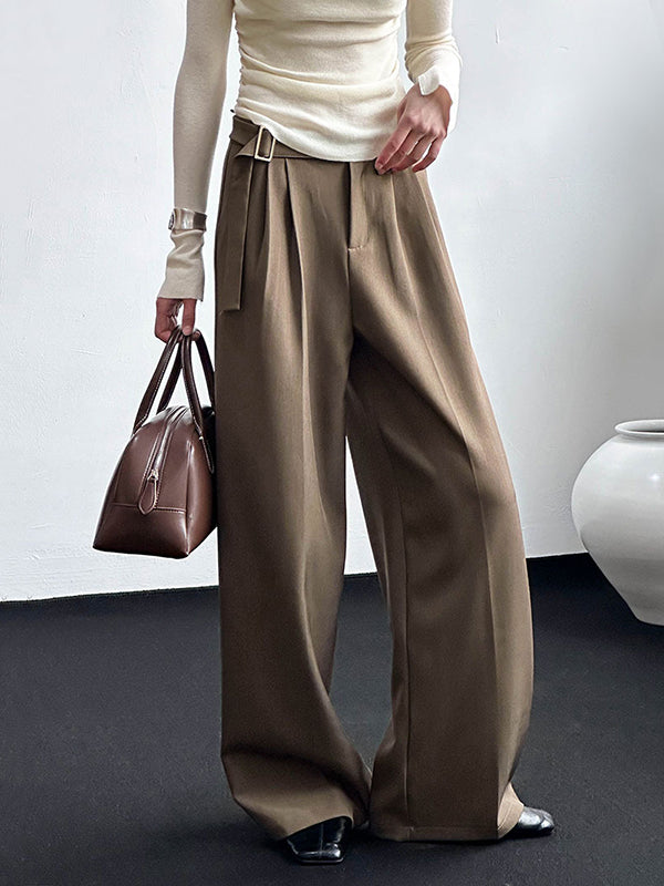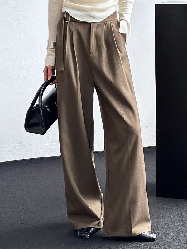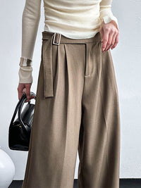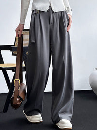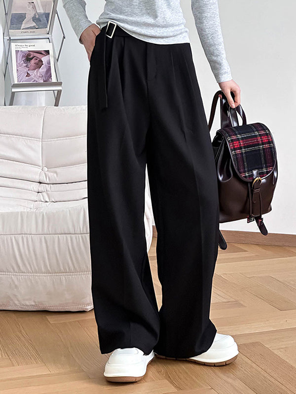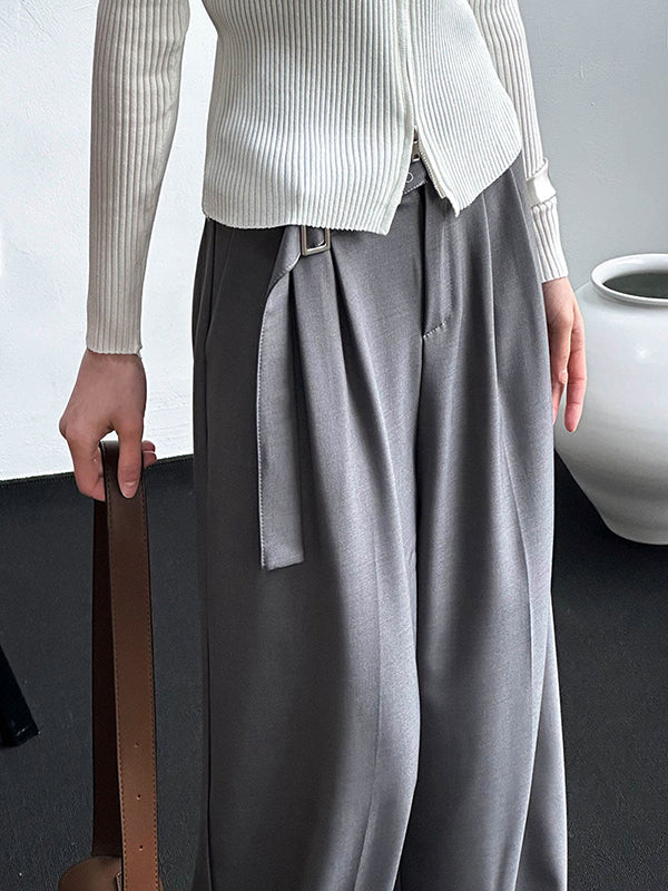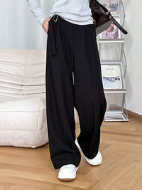 Belt Buckle Solid Color High Waisted Loose Trousers Suit Pants