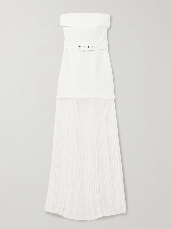 Bandeau Sleeveless Belted Pleated Solid Color Split-Joint Zipper Tube Evening Dresses Maxi Dresses