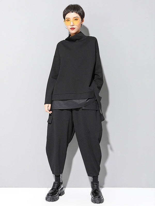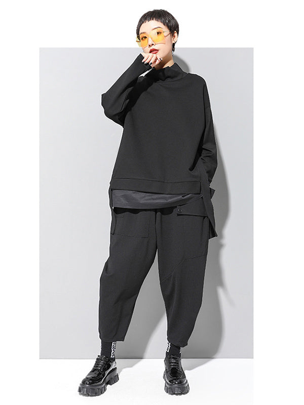 Black False Two Cropped Long Sleeve T-Shirt