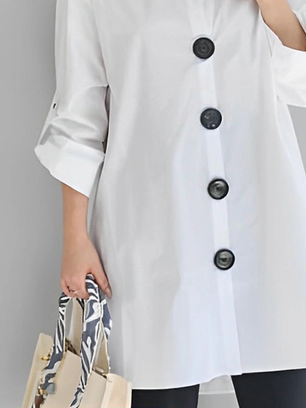 Buttoned High-Low Long Sleeves V-Neck Blouses&Shirts Tops