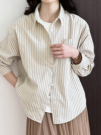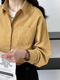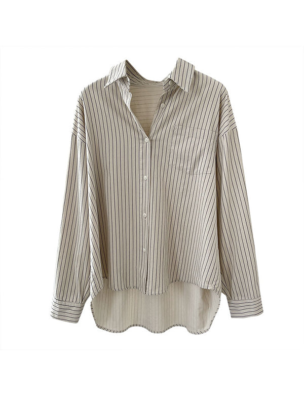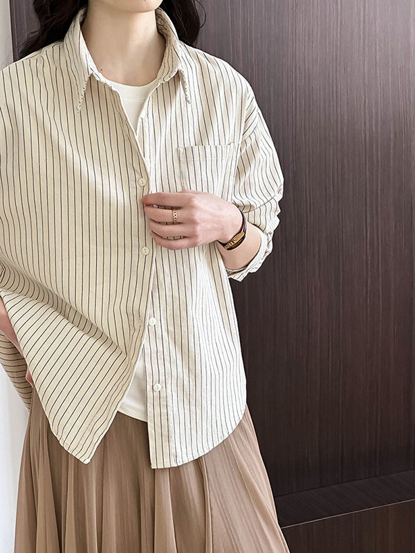 Buttoned Pockets Striped Long Sleeves Loose Lapel Blouses&Shirts Tops