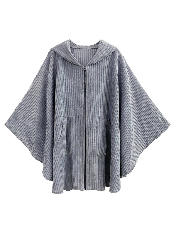 Casual Batwing Sleeves Loose Zipper Jackets Outerwear