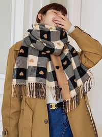 Casual Contrast Color Heart Plaid Jacquard Shawl&Scarf