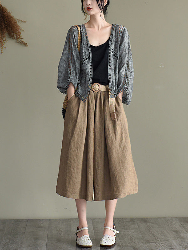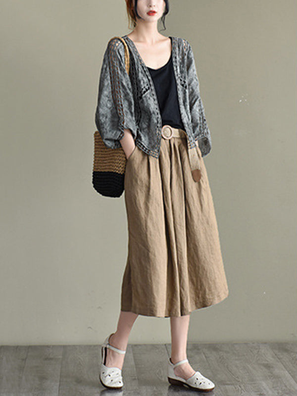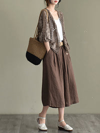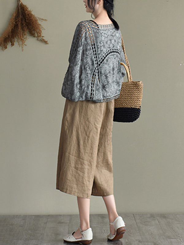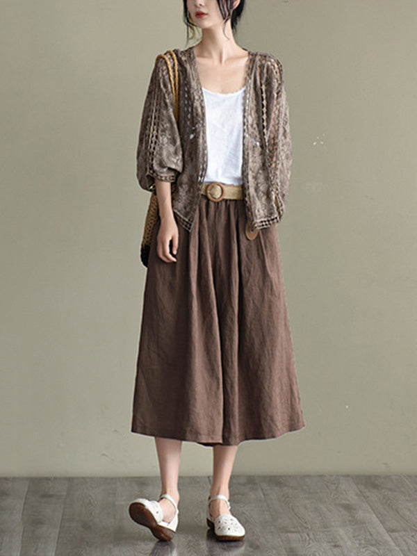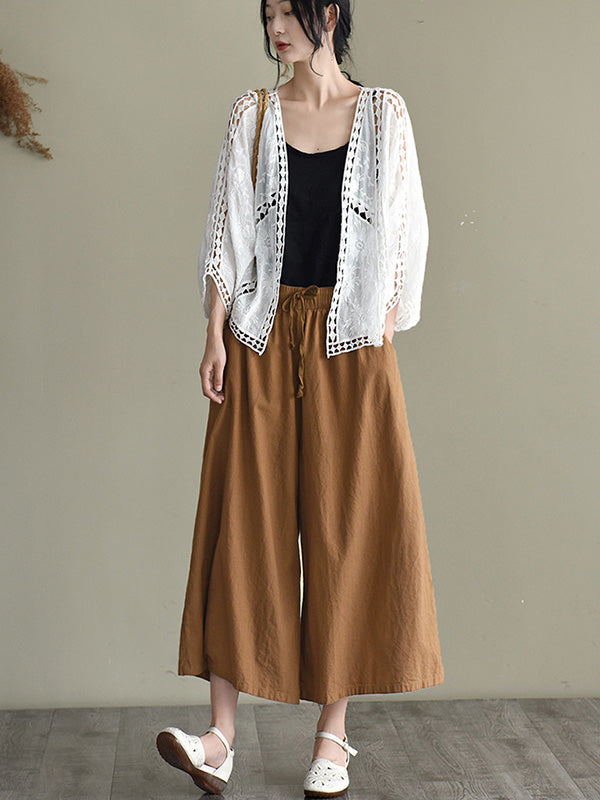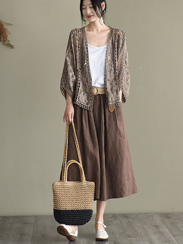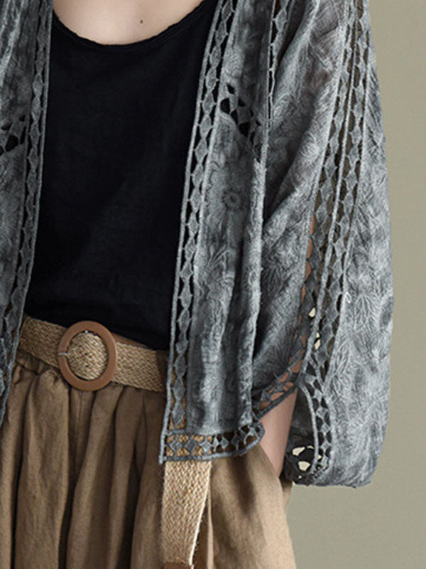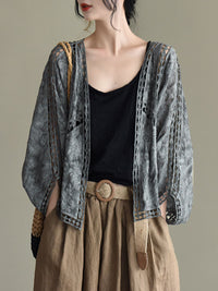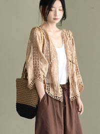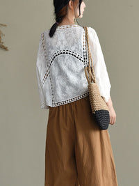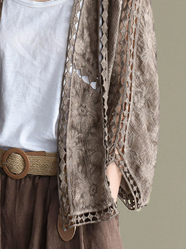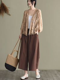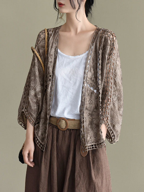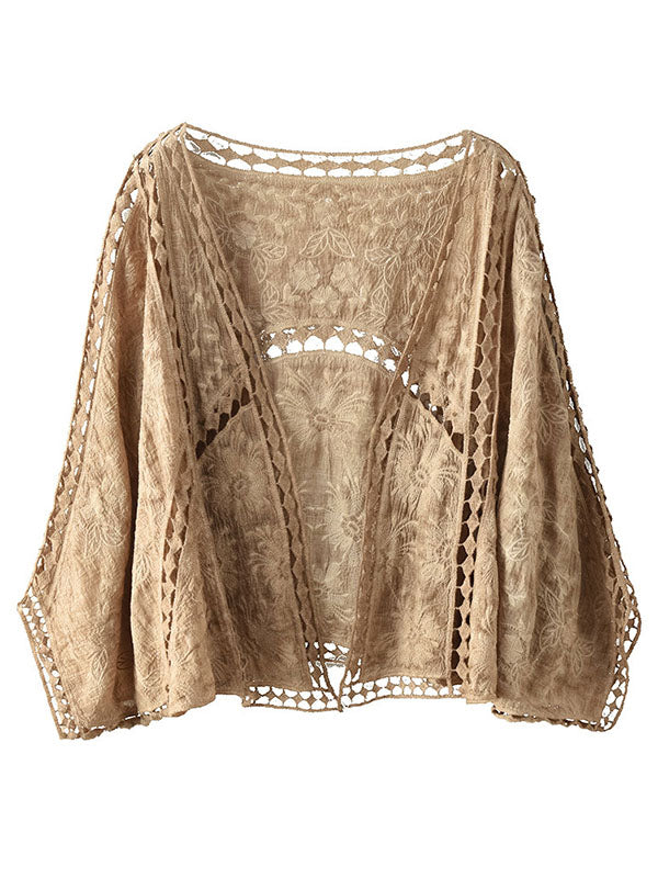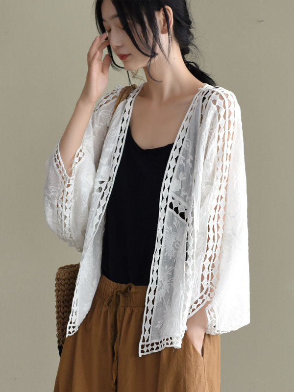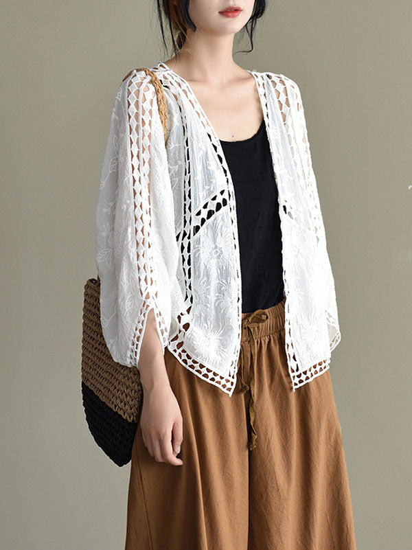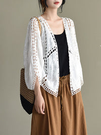 Seven-Quarter Sleeves Crochet Hollow Solid Color Outerwear