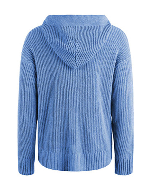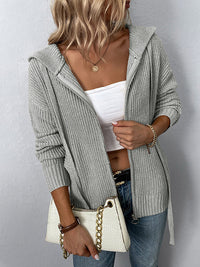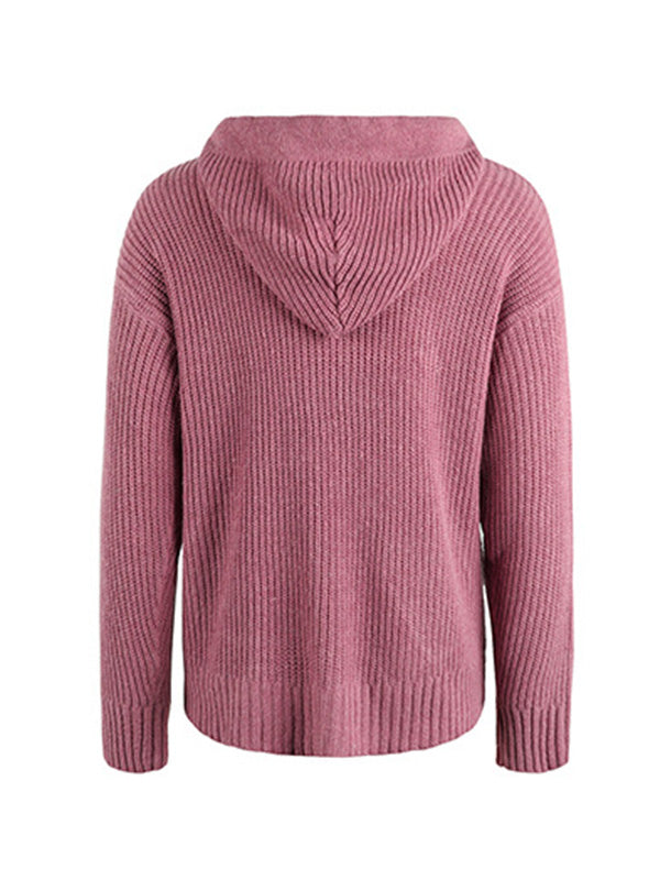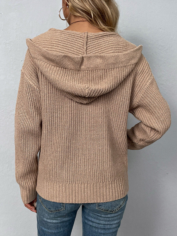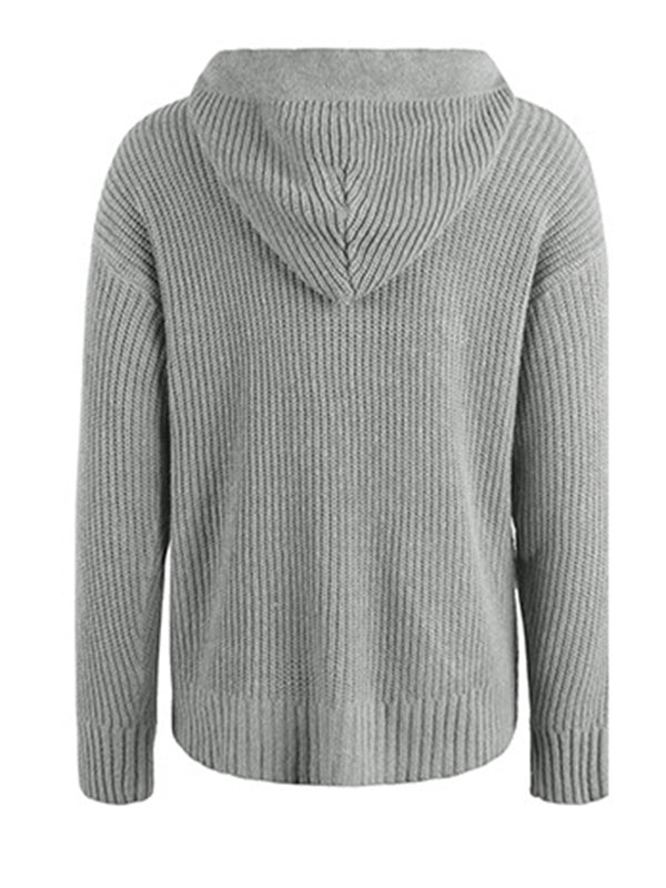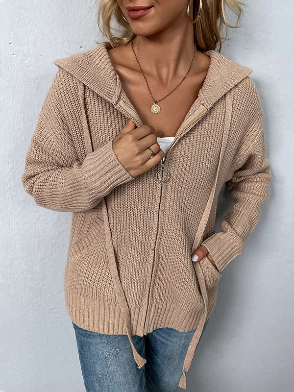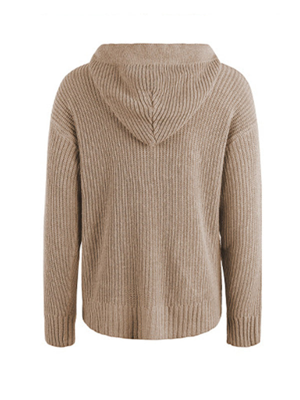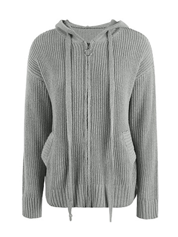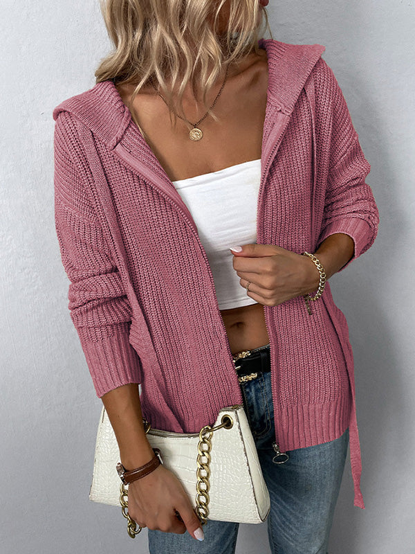 Casual Long Sleeves Hooded Solid Color Cardigan Tops
