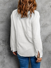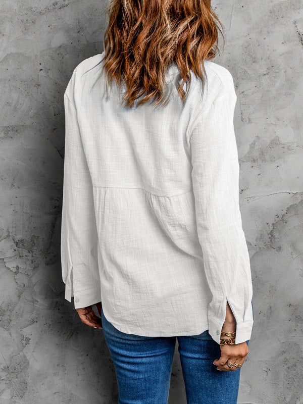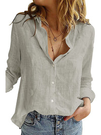 Casual Long Sleeves Loose Solid Color Lapel Collar Blouses
