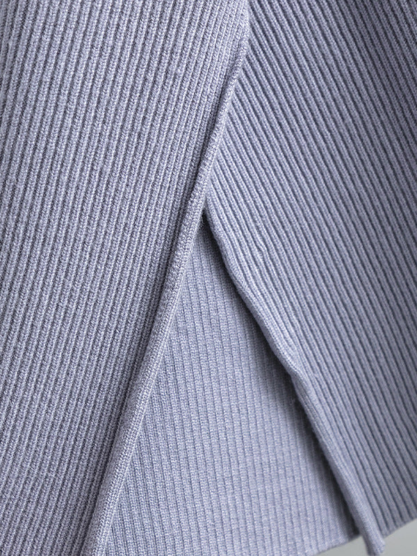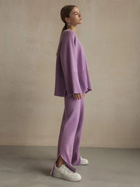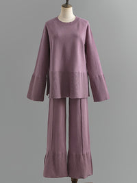 Casual Long Sleeves Loose Solid Color Round-Neck Sweater Tops & Wide Leg Pants Two Pieces Set