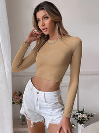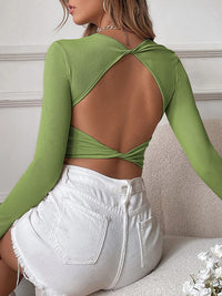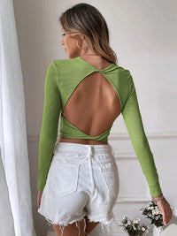 Casual Long Sleeves Skinny Backless Solid Color Round-Neck T-Shirts Tops